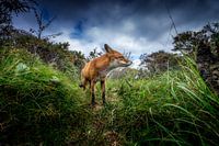 Een vos volgend zijn spoor in de Amsterdamse Waterleidingduinen, Nederland