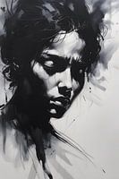 A hauntingly expressive drawing in ink and coal, the emotions themselves on the page are captured in a fleeting, yet eternal, moment of vulnerability, with every line, stain and scratch telling a story of pain, longing or triumph.