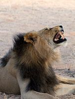 A Kgalagadi black-maned lion taking a rest at the Kgalagadi Transfrontier park in South Africa!