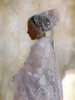 Hij heeft ze enigszins doorzichtig geschilderd waardoor de hoofd- en omslagdoek de indruk wekken van zijde…