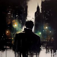 Urban zwart wit afbeelding van een man die de stad inloopt. Prachtige lichteffecten in een sobere omgeving maken het compleet. Passend bij diverse stijlen en trends. Urban.
