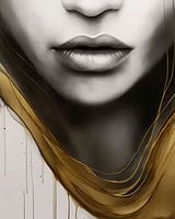 A touch of gold. Modern portret, close-up van de lippen van een jonge vrouw met een vleugje goud. Kies zelf het formaat en materiaal en maak dit werk helemaal passend voor jouw interieur.