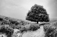 De mokerheide, nabij Mook. Een prachtig wandelgebied waarbij de heide wordt afgewisseld met een enkele boom.