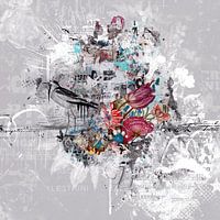 Vanuit het onderbewustzijn heb ik gespeeld met verschillende elementen en laat composities laag voor laag ontstaan. Alles komt samen in een collage waar ik de volledige controle heb over grootte, compositie en kleur. In de originele werken volgt hierna de fysieke bewerking,deze wordt opgebouwd met diverse materialen. De basis is digitaal maar de finishing touch is handwerk. De werken zijn een mix van illustratie, typografie, fotografie en verschillende compilatietechnieken. Ik vind inspiratie in vintage brochures, street-art, bloemen, reizen, film en kunst.