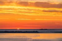 Alesund (Ålesund), Noorwegen - Uitzicht vanaf de berg Aksla naar het eiland Giske bij zonsondergang
