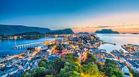 Ålesund, Noorwegen - Panorama van de stad bij zonsondergang