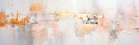 Moderne kunst met goudkleurige vormen, gedempte contrasten en een textuur in lichtroze. Dit abstracte schilderij in panoramisch formaat straalt een tijdloze, contemplatieve rust uit. De kleuren smelten samen tot een harmonieuze compositie.