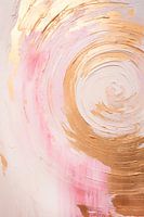 Minimalistische kunst met gouden cirkels en een textuur in lichtroze en wit. Het abstracte ontwerp is bedoeld om een ontspannen sfeer te creëren. De kleur creëert een geweldig binnenklimaat en helpt ons innerlijke rust en sereniteit te vinden.