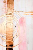 Moderne kunst die accenten legt met luxe details en harmonie en verfijning uitstraalt. Dit abstracte schilderij straalt een heldere, minimalistische elegantie uit die indruk maakt door de combinatie van zachtroze tinten, zuiver wit en gouden cirkelstructuren. De delicate maar kernachtige lijnen van de gouden elementen lijken in…