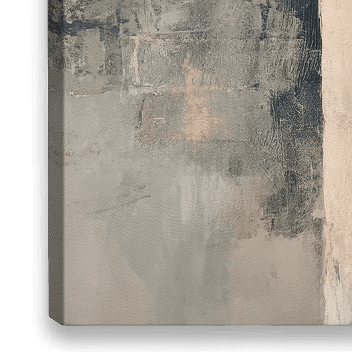 De ruime compositie ontvouwt zijn speciale effect dankzij het royale panoramische formaat, dat het oog zachtjes over het oppervlak leidt. Delicate crèmetinten, warme zandtinten en ingetogen grijs vormen samen rustige lagen die zowel openheid als diepte uitstralen. Verticale structuren creëren rustige ankerpunten, terwijl horizontale…