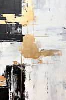 Dit indrukwekkende abstracte kunstwerk combineert moderne elegantie met een harmonieuze balans van zwart, wit en luxueus goud. De verticale en rechthoekige vormen creëren een architectonisch gevoel dat zowel structuur als artistieke vrijheid weerspiegelt. Het gebruik van dikke kleurtoepassingen en spannende texturen creëert een…