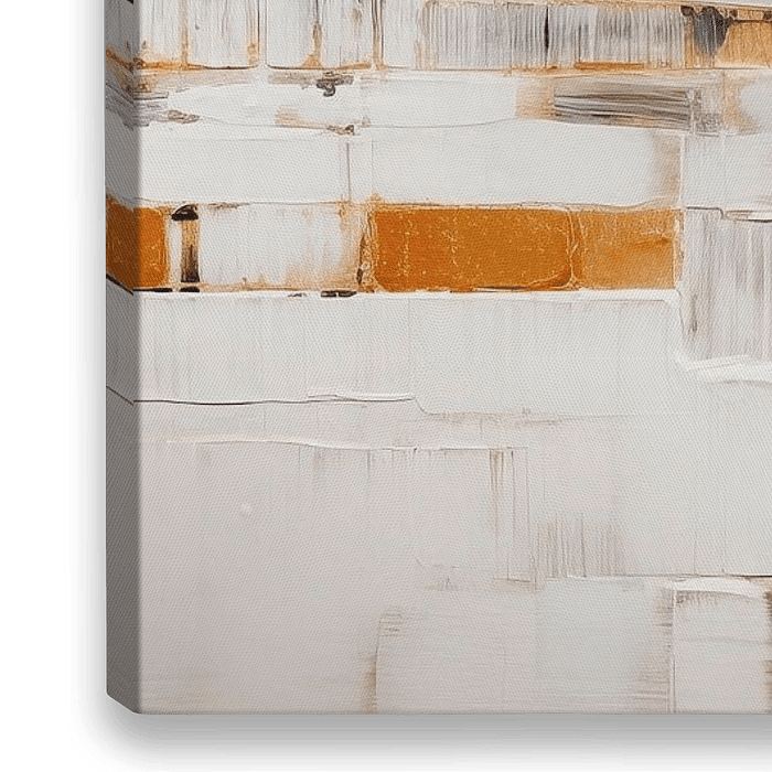 Moderne kunst met goudkleurige vormen, sterke contrasten en een textuur in zwart en wit. Dit abstracte schilderij in panoramisch formaat straalt een tijdloze energie uit. De kleuren smelten samen tot een harmonieuze compositie.