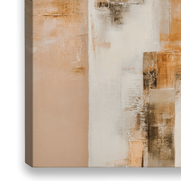 Dit abstracte werk ontvouwt een kalme, moderne beeldtaal waarin verticale lichtzones en zacht gelaagde oppervlakken elkaar ontmoeten. Warme beige- en zandtinten worden gecombineerd met gedempte bruine en grijze nuances om een harmonieuze compositie te creëren die doet denken aan architecturale structuren, stedelijke ruimtes en open…