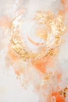 Moderne kunst met goudkleurige vormen, sterke contrasten en een textuur in oranje, perzik en lichte aardetinten. Dit abstracte schilderij straalt een tijdloze, frisse energie uit. De kleuren smelten samen tot een harmonieuze compositie.
