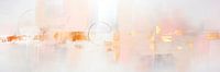 Moderne kunst met goudkleurige vormen, gedempte contrasten en een textuur in lichtroze. Dit abstracte schilderij in panoramisch formaat straalt een tijdloze, contemplatieve rust uit. De kleuren smelten samen tot een harmonieuze compositie.