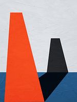 Levendige compositie in blauw en oranje die de aandacht trekt en emoties opwekt. De geometrische abstracte kunst die iedereen nu aan de muur wil hebben. Moderniteit, kleur en visuele impact in één werk. Koop het nu!