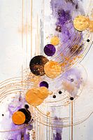 Moderne kunst met goudkleurige vormen, sterke contrasten en een textuur in paars en wit. Dit abstracte schilderij straalt een tijdloze energie uit. De kleuren smelten samen tot een harmonieuze compositie.
