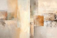 Zacht over elkaar gelegde kleurvlakken vormen een kalme, evenwichtige compositie met veel diepte. Warme beige-, crème- en zandtinten worden gecombineerd met koele grijze nuances om een abstract schilderachtig landschap te creëren dat doet denken aan stadssilhouetten, gelaagdheid en stille horizonnen. De fijne structuren en zachte…