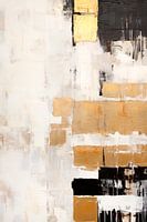 Dit indrukwekkende abstracte kunstwerk combineert moderne elegantie met een harmonieuze balans van zwart, wit en luxueus goud. De verticale en rechthoekige vormen creëren een architectonisch gevoel dat zowel structuur als artistieke vrijheid weerspiegelt. Het gebruik van dikke kleurtoepassingen en spannende texturen creëert een levendige diepte die het oog telkens weer nieuwe details laat ontdekken. Dit werk straalt luxe, tijdloosheid en pure esthetiek uit.