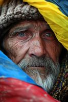 Koop dit portret AI portret met kleuren van de Oekraïense vlag van Egon Zitter op canvas, aluminium dibond, (ingelijste) fotoprint, behang en ArtFrame, op maat geprint in Fine-Art kwaliteit.