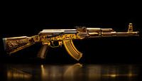 AK 47 Kalashnikov goud panorama schilderij die een luxe toevoeging zal zijn aan elke ruimte. Met zijn prachtige en stijlvolle uitstraling is het een ware eyecatcher. De schitterende kleuren en het bijzondere ontwerp maken dit kunstwerk 100% uniek en origineel. Het is de perfecte fotoprint om je interieur helemaal af te maken.