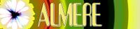 Affiche met de naam van de Nederlandse stad ALMERE op een groene en oranje gekleurde achtergrond en een witte bloem