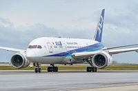 Deze ANA Boeing 787-8 taxiet richting de startbaan van Naha Airport om even later op te stijgen.