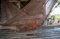ANGKOR WAT, CAMBODIA, DECEMBER 6 2015 - Jongetje in hangmat op veranda van zijn huis vlakbij Angkor Wat. One2expose Wout Kok