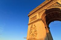 Koop de foto ARc de Triomphe detail zonsondergang van Dennis van de Water op canvas, aluminium dibond, (ingelijste) fotoprint, behang en ArtFrame, op maat geprint in Fine-Art kwaliteit.
