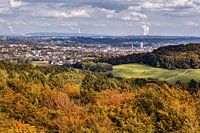 Panorama over de bossen rond het Drielandenpunt in Vaals, meer specifiek de Aachener Wald en de stad Aken