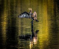 Aalscholver op paaltje in de ochtendzon