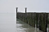 Golfbreker met Aalscholvers op het noordezeestrand tussen Vlissingen en Zoutelande.