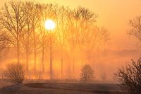 Vroeg op een ijzige ochtend, de mist die opstijgt langs de rivier de Dender met zijn verschillende bochten