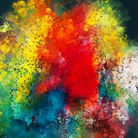 "On the bright side" (De positieve kant van de dingen) is een kleurrijk, speels, abstract werk, voornamelijk in primaire kleuren - rood, geel en blauw - en wat groen op een donkere achtergrond. In eerste instantie geschilderd, daarna verder bewerkt is het werk digitaal gemaakt in Photoshop, in het donkere seizoen toen ik behoefte had om meer kleur in mijn leven te toveren.