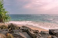 Mooie landschappen hier aan de kust. De grote keien beschermen de huizen van de bewoners voor de zee. Gemaakt in Sri Lanka, omgeving Weligama.
