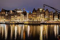 Mooi verlichte, statige heren huizen aan de Amsterdamse grachten! Mooie reflectie in het water!
