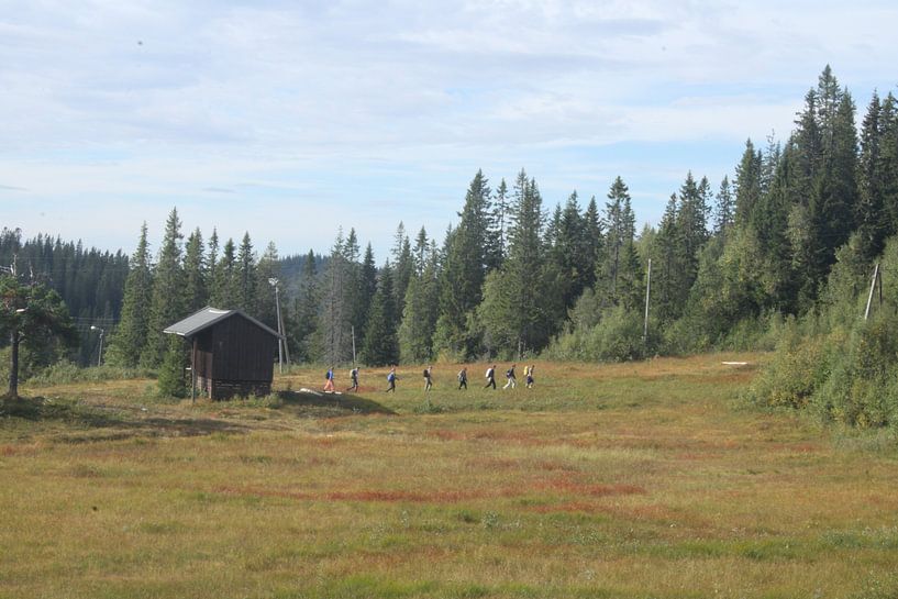 Links, rechts, links, rechts. Stap voor stap vonden ze een weg door het landschap. 'Nog een kilometer', zegt de voorste. 'Ik kan niet meer', zegt de laatste. Elke 10 meter kijken ze omhoog, naar waar ze naartoe gaan. Daar waar je je, hoe klein je ook bent, een klein beetje een reus kan voelen.