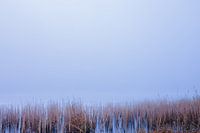 Aan de waterkant bij dichte mist lijkt het net of het water doorloopt tot in het oneindige.