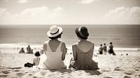 Twee dames zittend op het strand. Een sfeerbeeld in de stijl van de dertiger jaren.