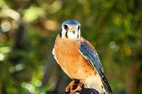 Een schitterende prairihavik op de handschoen van zijn of haar trainer, in de Sonora Woestijn, Arizona.