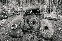 Oude vervallen oldtimer in een Zweeds bos