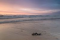 De aangespoelde mosselen op het strand in Cadzand en de roze / blauwe lucht tijdens een zonsondergang maakt deze foto erg interessant.