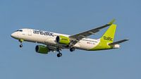 Aankomst AirBaltic Airbus A220-300 passagiersvliegtuig.