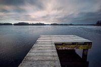 Aanlegsteiger in een bevroren Paterswoldsemeer, Nederland