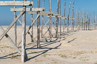 Oude aanlegsteiger van de veerdienst tussen Vlieland en Texel op de zandplaat de Vliehors op het eiland Vlieland. Een groot deel van de Wadden staat op de Werelderfgoedlijst van UNESCO.