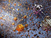 Vliegende berekende Mandelbulb fractals die eruit zien als een armada van virussen. 3d fractal grafiek, deel van een reusachtige fractal berekend met Mandelbulb 3d programma, JPEG grafiek.