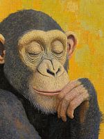 Aap Geel | Aap in Gouden Achtergrond - Op dit schilderij zie je een aap met gesloten ogen en een ontspannen uitstraling, tegen een heldere, gele achtergrond, wat de moderne kunststijl benadrukt.