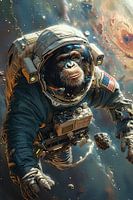 Indrukwekkende foto van een aap astronaut zwevend in de ruimte.