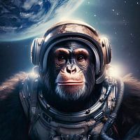 Grappig dierenmotief van een aap in de ruimte.