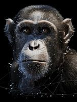 Deze futuristische afbeelding neemt je mee naar een wereld waarin de grenzen tussen biologie en technologie steeds meer vervagen. Een aap bevindt zich in een complex web van technologie. Het is alsof hij gevangen zit in een matrix van kunstmatige intelligentie en zich afvraagt of er nog een weg terug is naar zijn oorspronkelijke leefomgeving.